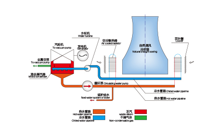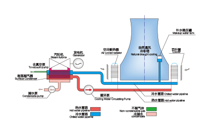 間接空冷系統(tǒng)的凝汽器可采用混合式或表面式凝汽器。間接空冷塔大多采用自然通風(fēng)冷卻塔,可選用混凝土塔體或鋼結(jié)構(gòu)塔體。