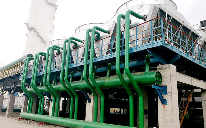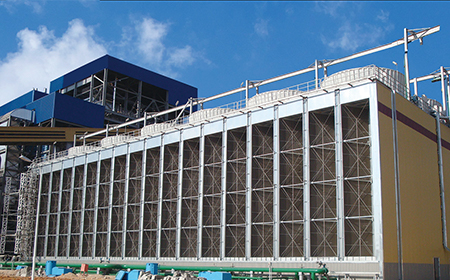 干冷段換熱管束采用高效翅片型換熱管,布置在塔體兩側(cè),可通過(guò)高度及布置型式調(diào)整進(jìn)行面積擴(kuò)展。
