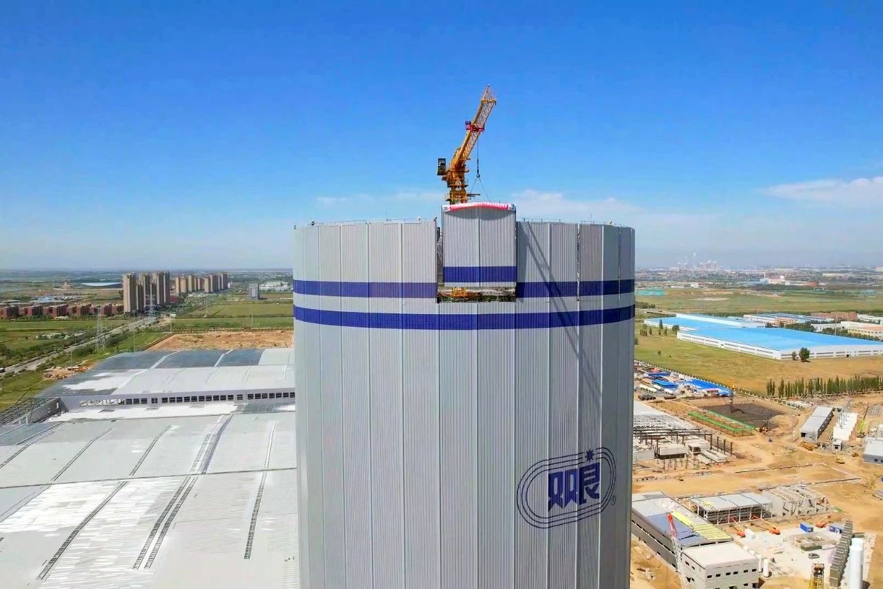 8月22日,在內(nèi)蒙古包頭的雙良新能源光伏產(chǎn)業(yè)園三期50GW單晶硅項目(簡稱“三期項目”)建設(shè)現(xiàn)場,隨著頂部最后一塊蒙皮吊裝完成鋼塔合攏,三期項目1號、2號全鋼結(jié)構(gòu)間冷塔順利封頂,為三期項目早日投產(chǎn)奠定了堅實的基礎(chǔ)。